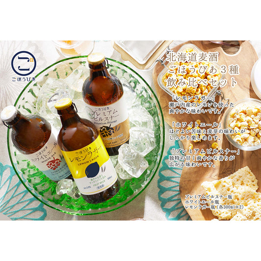 北海道・小樽発クラフトビール 北海道麦酒 ごほうびあ 3種飲み比べセット