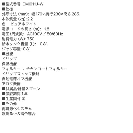 デロンギ ディスティンタコレクション ドリップコーヒーメーカー(ピュアホワイトICMI011J-W)