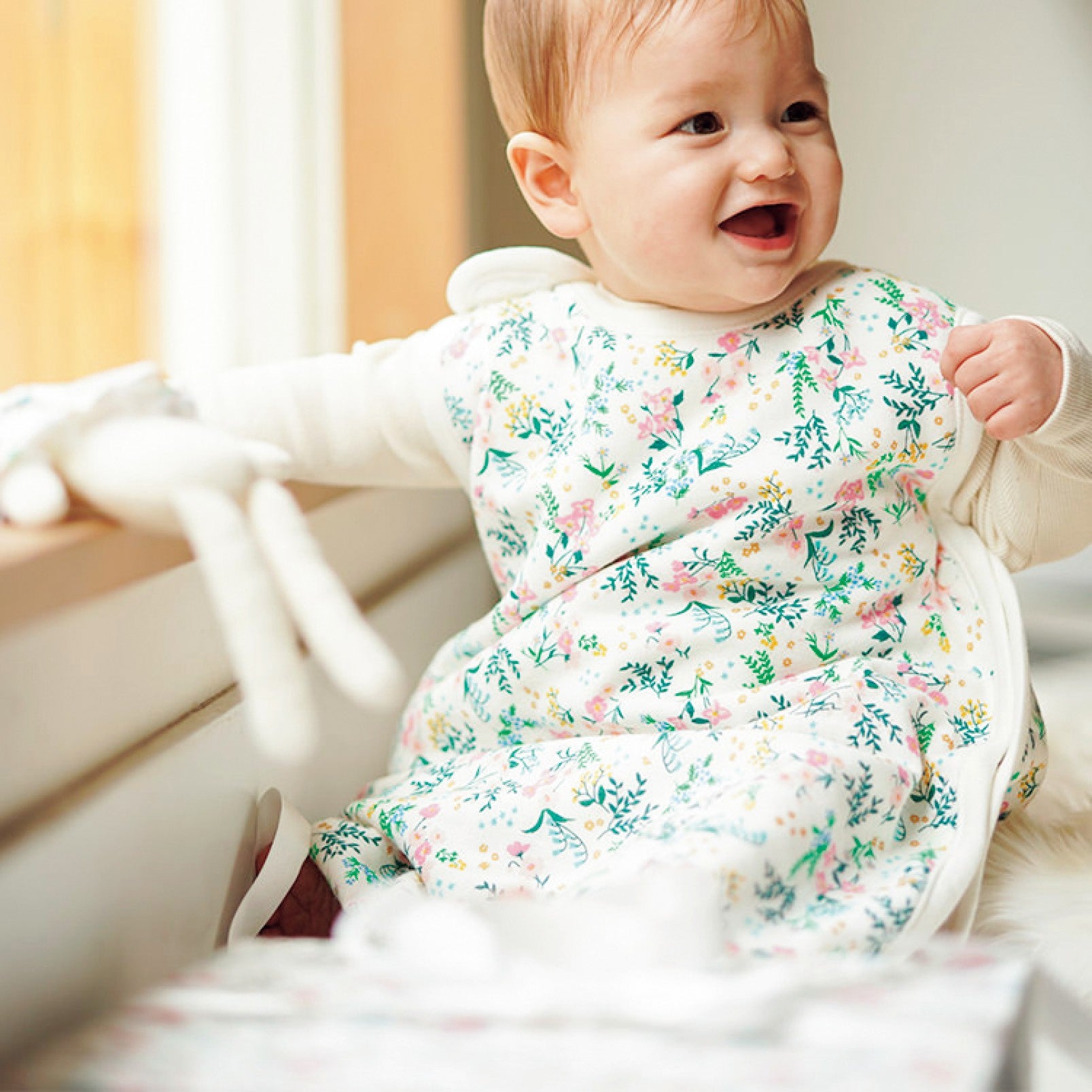 ■「着るお布団」と呼ばれるスリーパーは、適度な体温調整ができ、赤ちゃんの快適な睡眠をサポートするアイテム。表地は柔らかく、裏は汗を吸収しやすいパイル生地で、季節を問わず、新生児~2歳頃までと長く使えます。