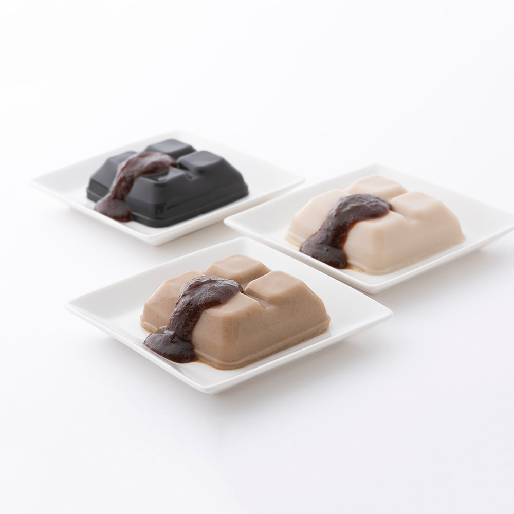 ■内容量:濃厚白ごまどうふ(90g×2個入・みそたれ付)・濃厚黒ごまどうふ(90g×2個入・みそたれ付)・濃厚金ごまどうふ(90g×2個入・みそたれ付) 各2袋