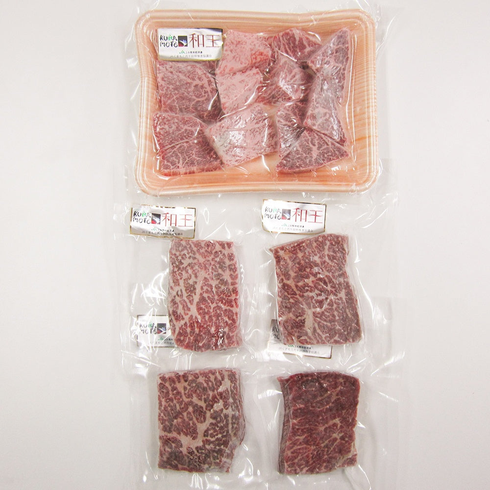 和王は、熊本経済連が供給する黒毛和牛の枝肉の中で、生後28ヶ月以上のもので、5等級と上位等級4等級の中から厳選されます。 熊本県が誇る黒毛和牛「和王」は和牛独特の風味と食感が充実した牛肉です。