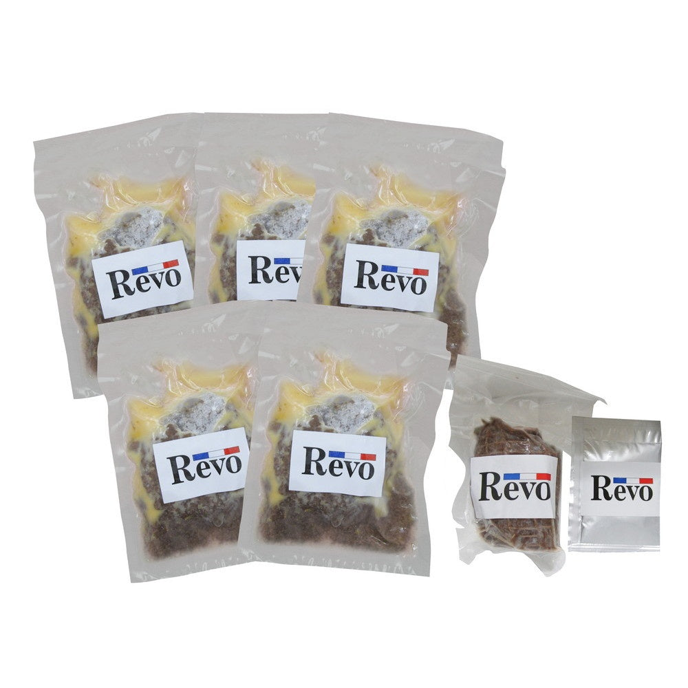 ■内容量:REVO黒毛和牛A4ランク以上ローストビーフ200g、REVO特製ローストビーフソース40g、黒バーグR200g×5袋