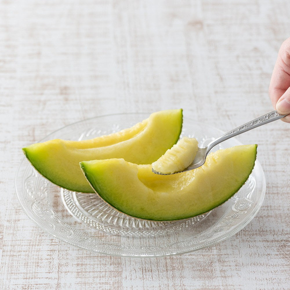 ■静岡県西部・袋井市一帯で育てられるマスクメロンの最高峰"クラウンメロン"。太陽の光を活かすよう開発されたガラス温室の中、1本の木に1つの実だけを厳選し、全ての養分をその1玉に集中させ育てられます。また、出荷の際には形状・糖度・大きさ等の厳しい検査が行われ、その基準をクリアしたものだけにクラウン(王冠)マークのシールが与えられるのです。静岡が誇るクラウンメロンの優美な香りととろける甘みをご堪能ください。