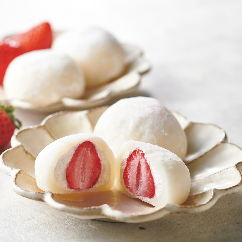 ■もち粉とうるち粉をブレンドしたやわらかく伸びのある大福で、ホイップクリームと福岡県産あまおうを1粒包み込みました。やわらかいお餅の食感といちごの酸味、やさしい甘さのクリームが1つになった味わいのバランスをお楽しみください。
