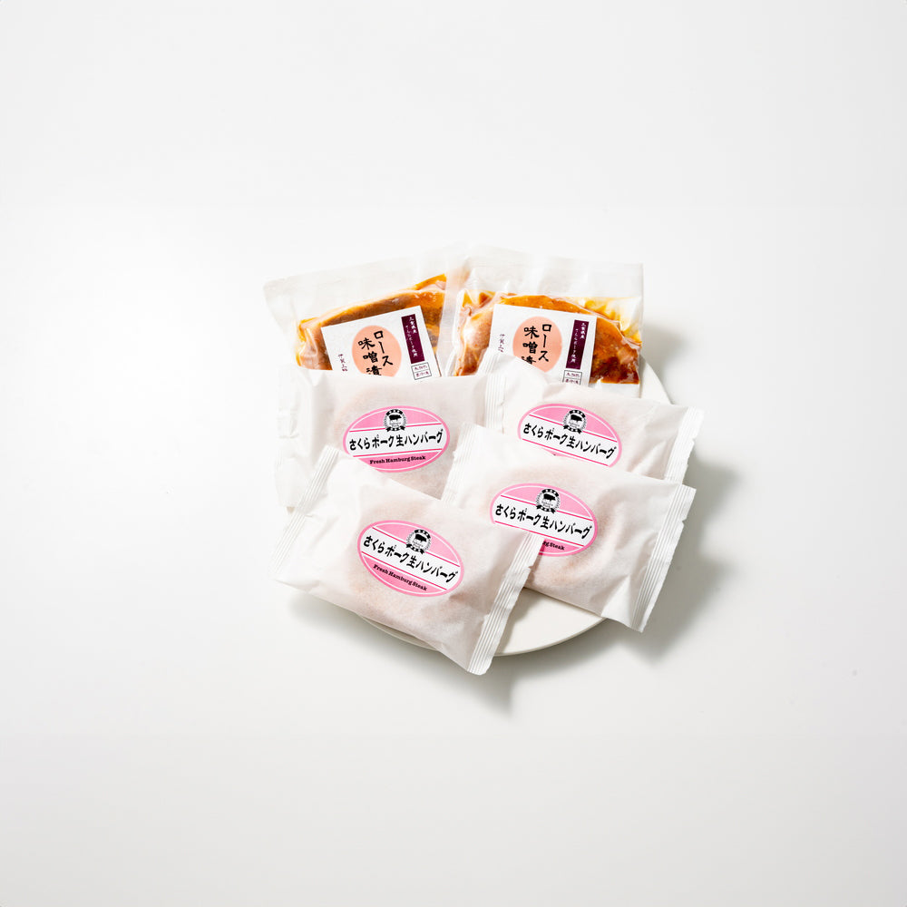 さくらポークロース味噌漬100g×2枚、さくらポーク生ハンバーグ120g×4個