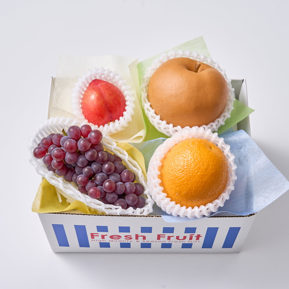 ■創業1988年のフルーツギフト専門店・フルーツワールドが厳選。旬のフルーツと定番フルーツを詰合せてお届けします。何が届くか、その楽しみも詰合せて。