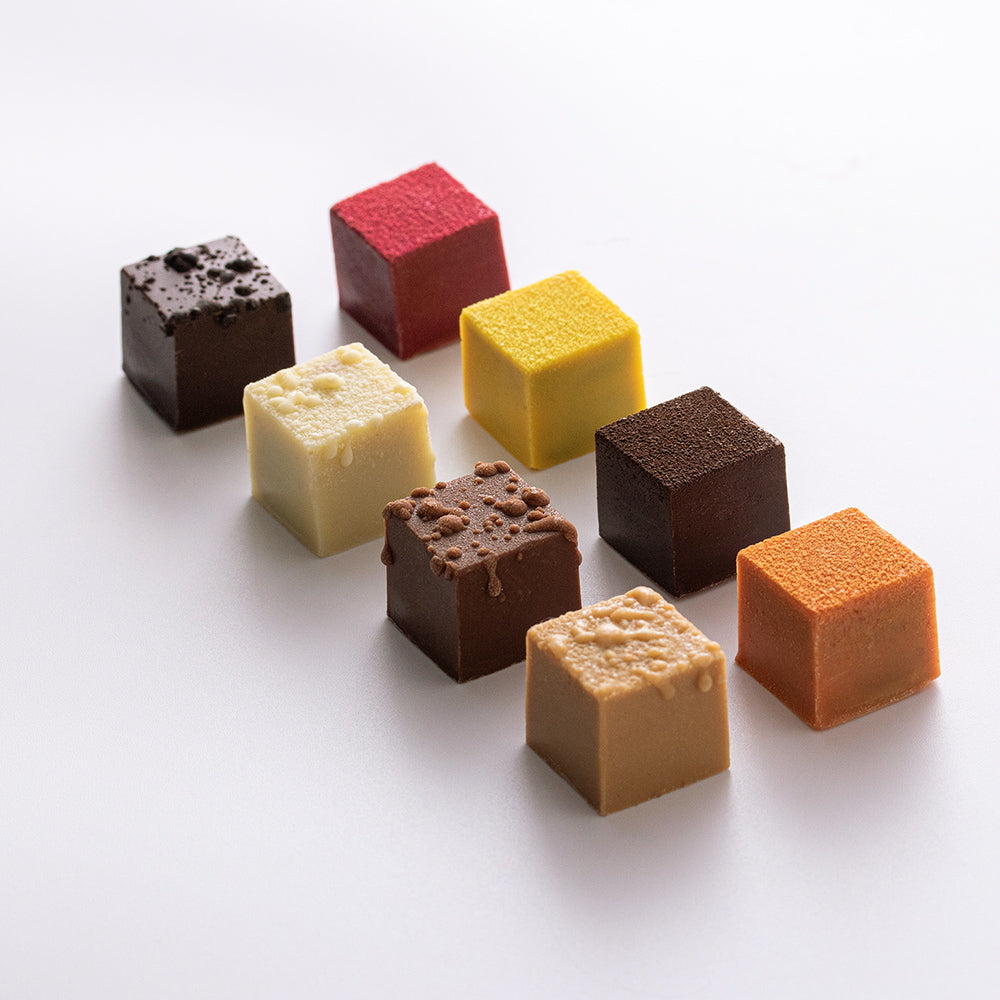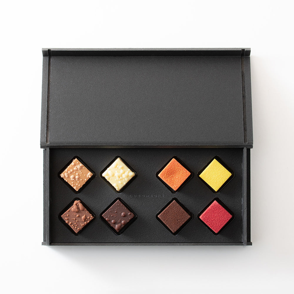 ■ナッツの豊かな風味を味わえる「カタランナッツ」と、果実の美味しさを閉じ込めた「フルーツ」を組み合わせた、キューブ型のボンボンショコラ8種セット。ザクザクとした食感のプラリネ、口どけなめらかなフルーツのガナッシュと、チョコレートの奥深い味わいを存分に味わえます。 洗練されたデザインは、大切な方への贈り物や、ご自分へのご褒美にもぴったりです。