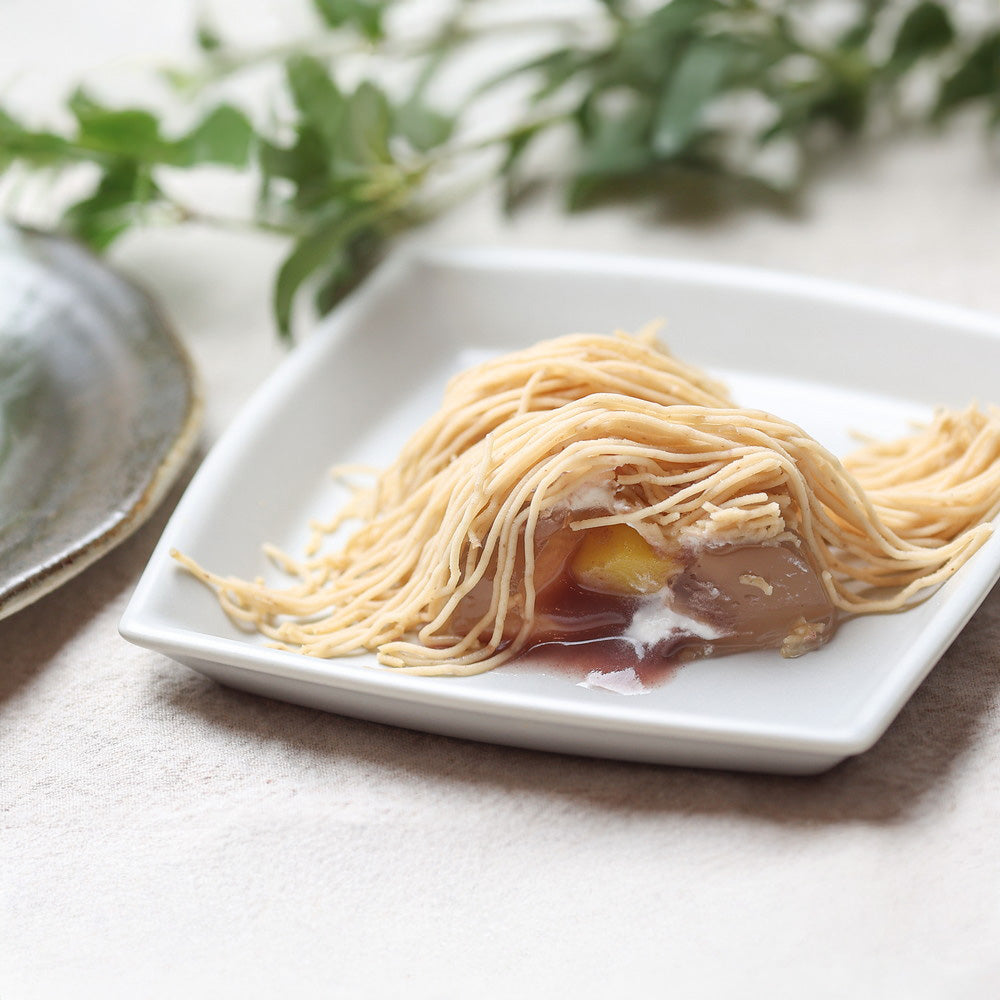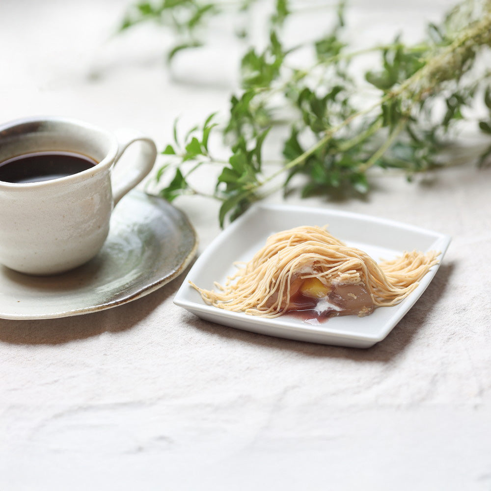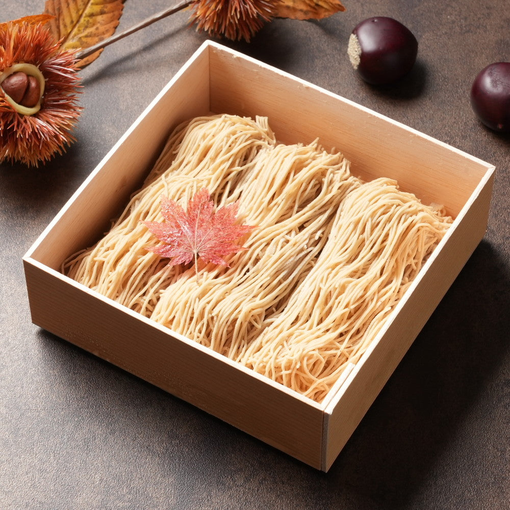 細い糸を美しく重ね合わせた、1.2mmの極細モンブランペースト。「お取り寄せモンブラン日本一」に選ばれた高級和栗モンブラン専門店「いも栗カボチャ」。