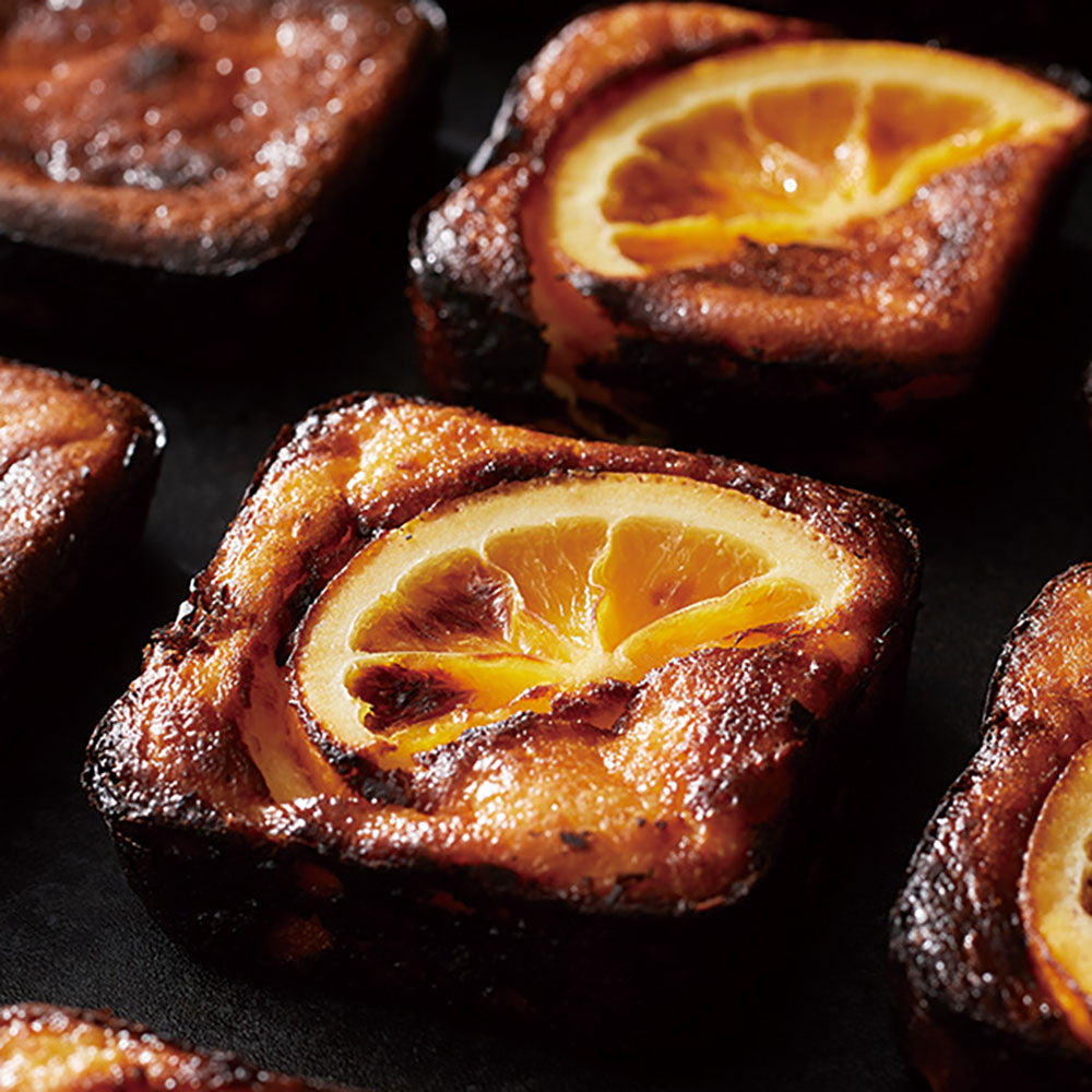 濃厚チーズ×オレンジ×カラメル風に焦がした表面は濃厚なチーズのしっとり感、カラメルのほろ苦さでするりと溶け合って融合し、オレンジの酸味と優しい香りでさっぱりした後味という最高なコンビネーションを体感できる味香るバスクチーズケーキです。