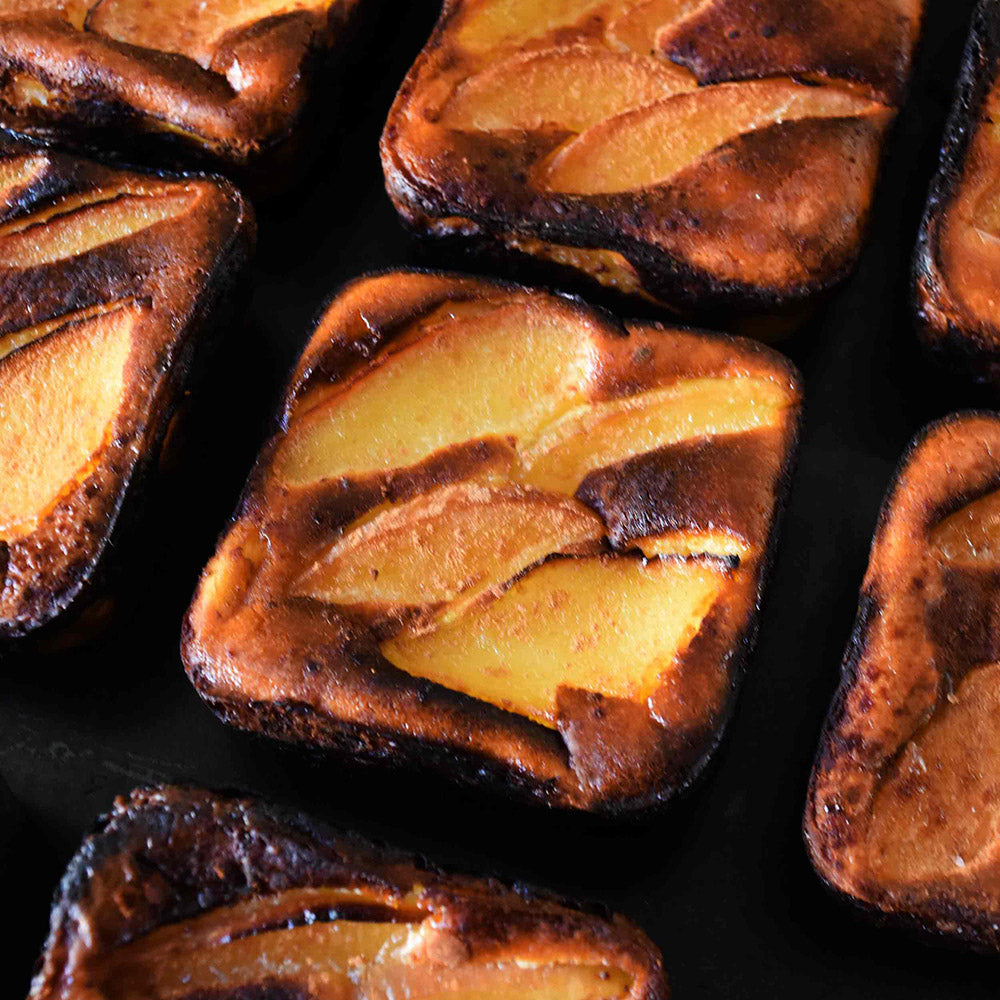 フレーバー好きに好まれるシナモン香るりんごとバスクチーズケーキのコラボレーションは、口に入れた瞬間はシナモンのフレーバーが香り、りんごの酸味・甘味とチーズの濃厚なクリーミーさの調和が口の中いっぱいに広がり、香りと酸味・甘味が品のある味わいに。