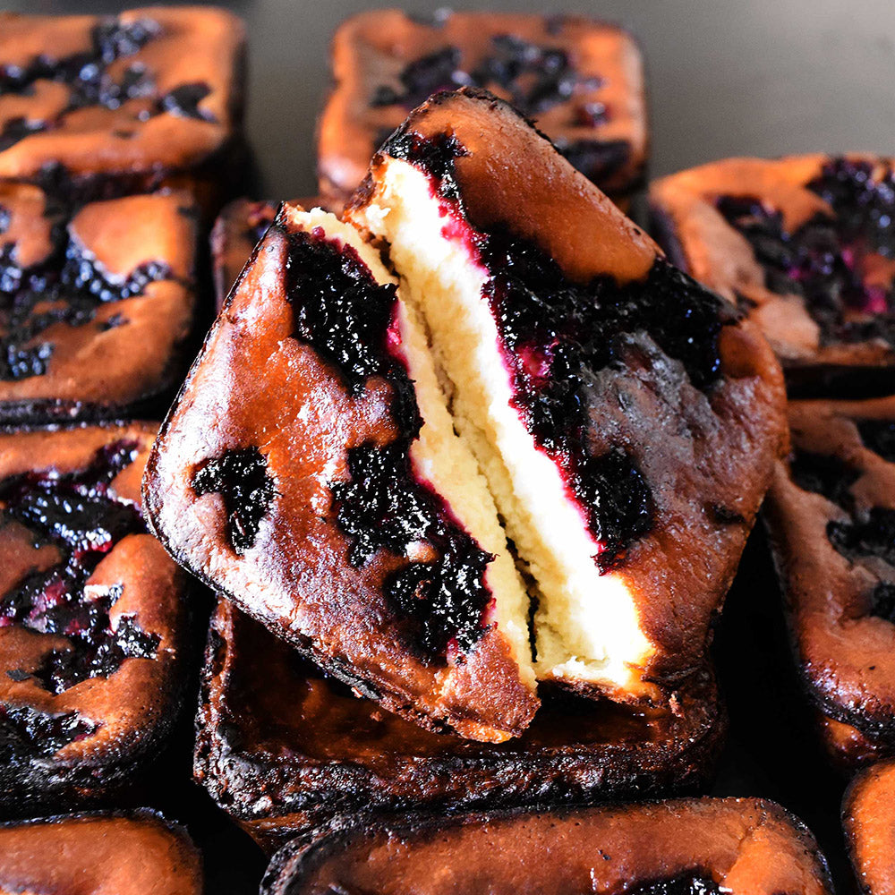 BBバスクチーズケーキの特徴であるカラメリゼ(焦げ)で旨味が増した濃厚なチーズケーキをカシスフレーバーとスッキリとした酸味がチーズの濃厚さを引締めます。
