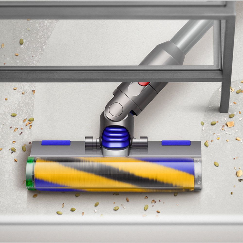 Fluffy Opticは見えないホコリを可視化。ソフトなナイロンフェルトブラシと、静電気の発生を抑えるカーボンファイバーブラシを組み合わせた幅250mmのクリーナーヘッドを搭載。フローリングや狭い隙間からゴミを取り除き、薄型設計のため家具の下まで簡単に届きます。