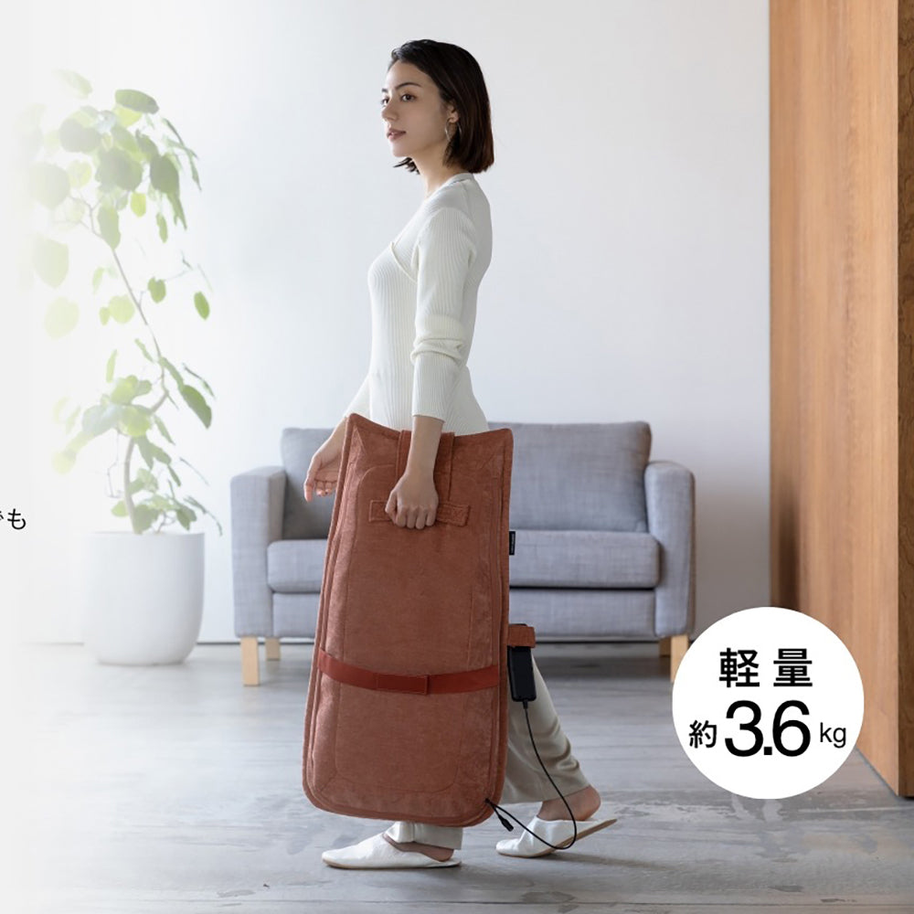 もみ範囲上下最大47cmの本格マッサージ機能を備え、肩~腰までしっかり届きます。コードレスだから気軽に持ち運んで、お好みの場所でマッサージできます。