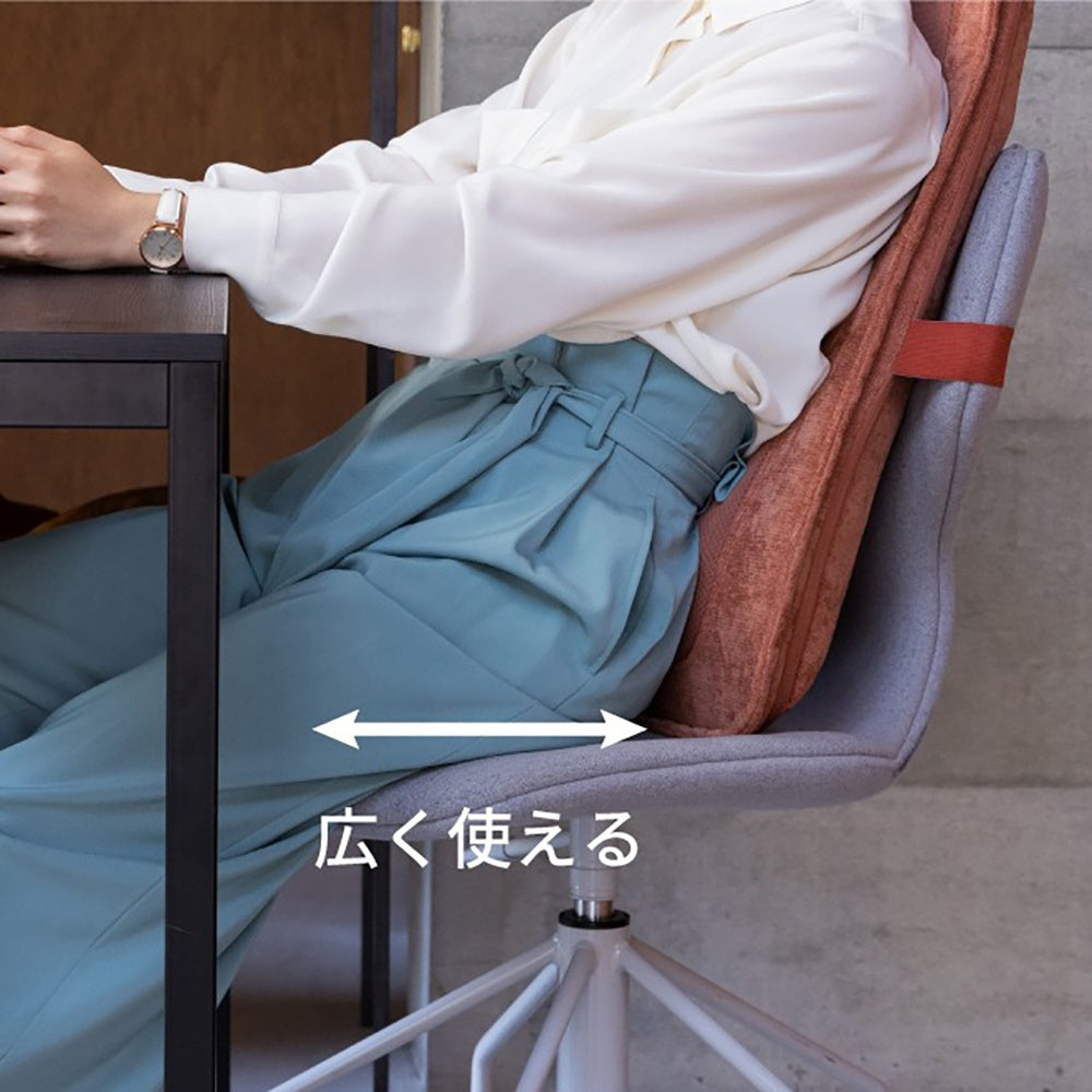 S字カーブのフォルムが背中にしっかりフィットします。奥行き12cmの薄型で、設置するソファやリラックスチェアの座り心地も損いません。座面がないため座高が高くなることもありません。