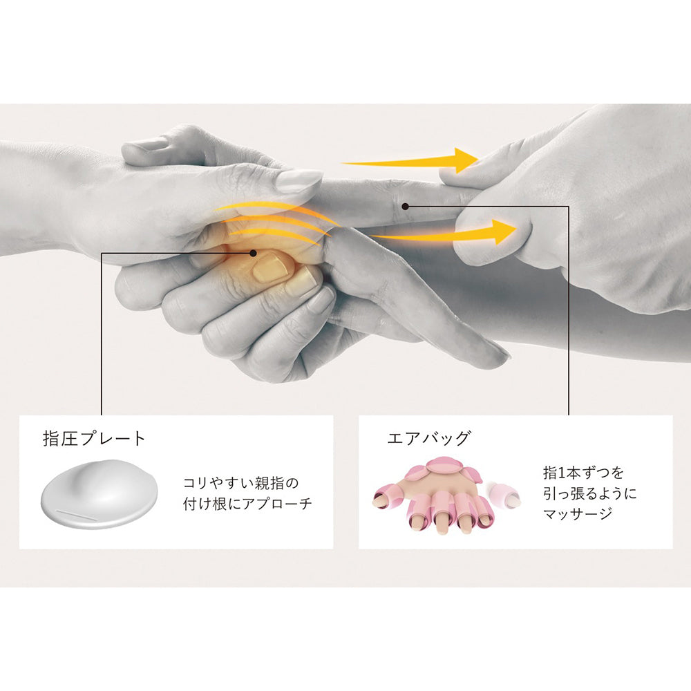 手のひらから指まで、バランスよくマッサージ。手全体をしっかり圧迫します。
