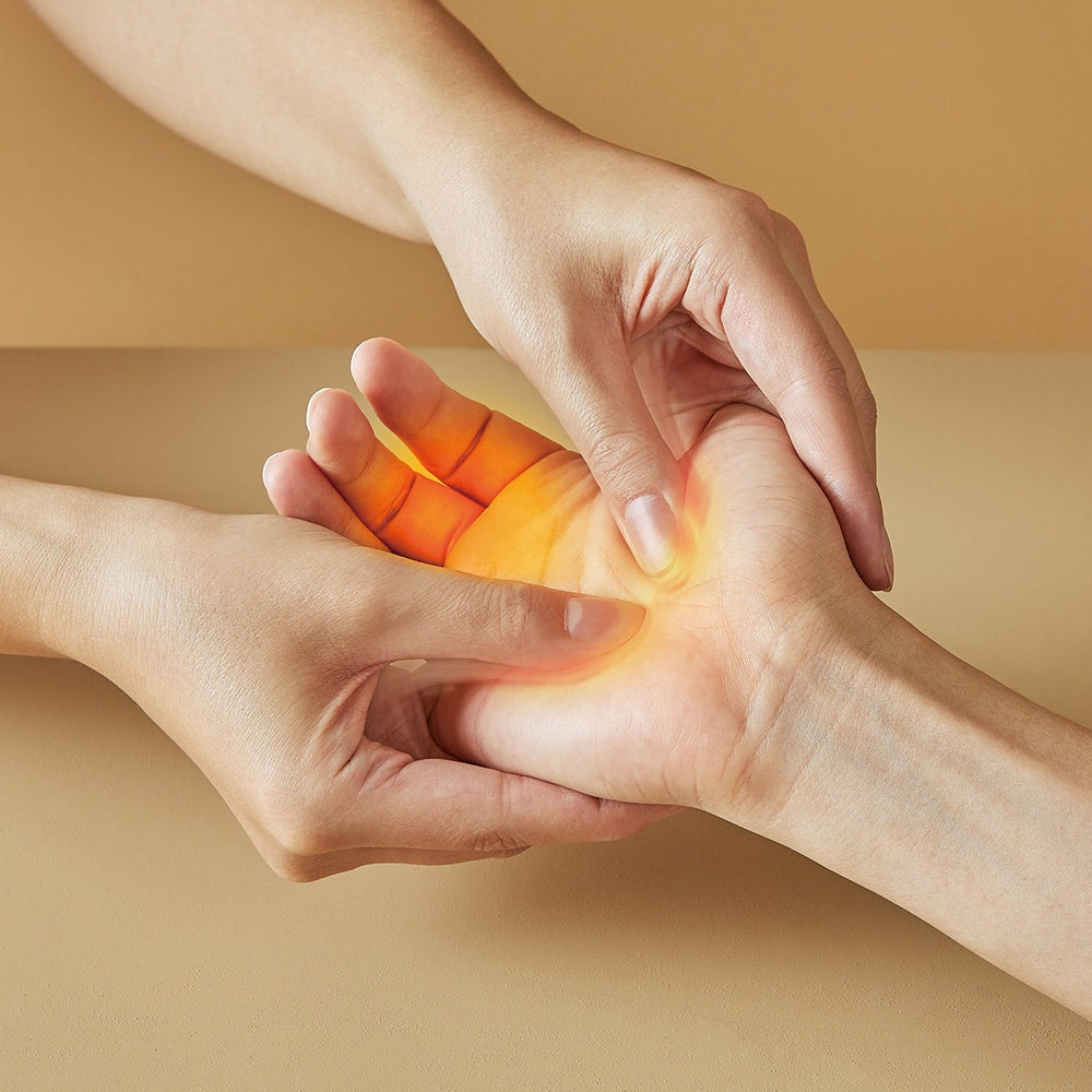 多彩な動きを含め、手から手首まで全体をじっくりもみほぐす。