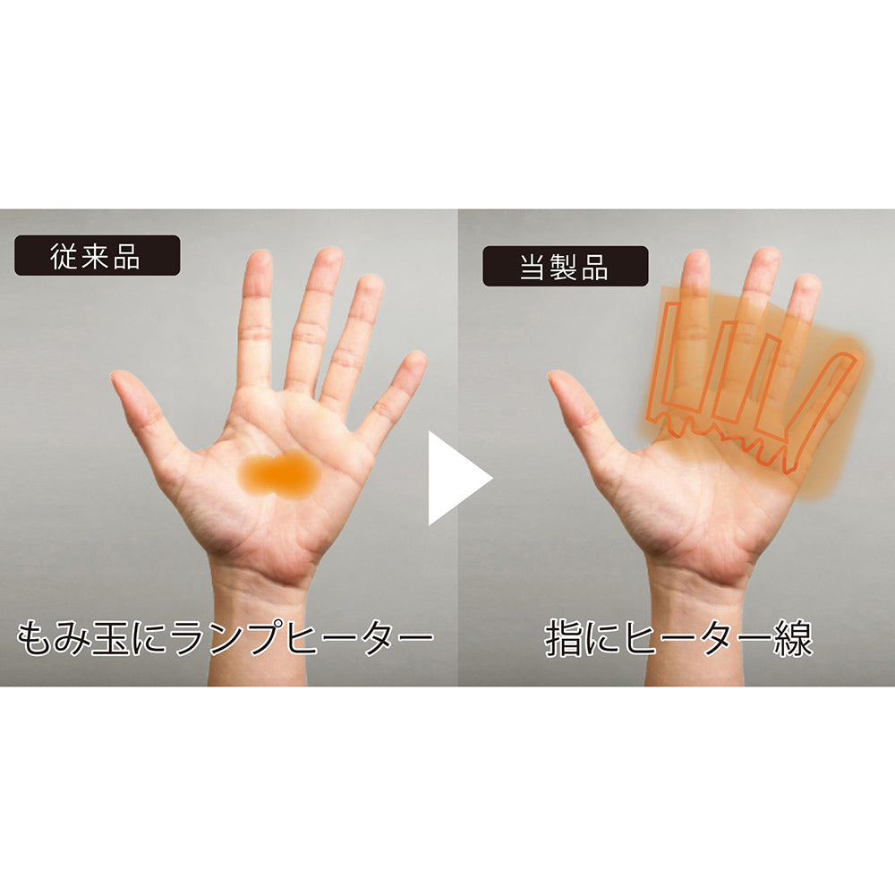 点で温めるランプヒーターから面で温めるヒーター線にすることで、速暖性がアップ。 速くしっかり温めながらマッサージできます。