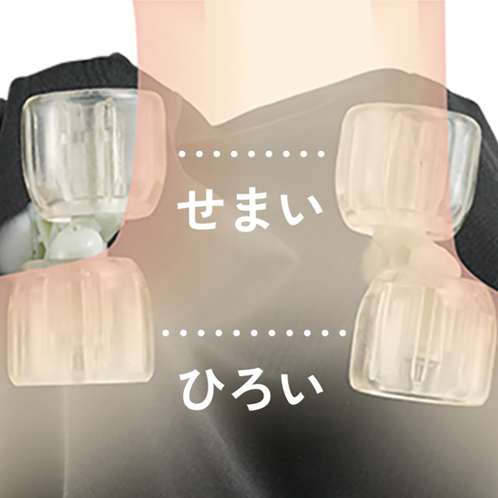 腕を通して使うベルトはワンタッチで長さが調節できます。体格に合わせて長めに、もみ心地を強くしたい時は短めになど、微調整しやすい面ファスナータイプです。