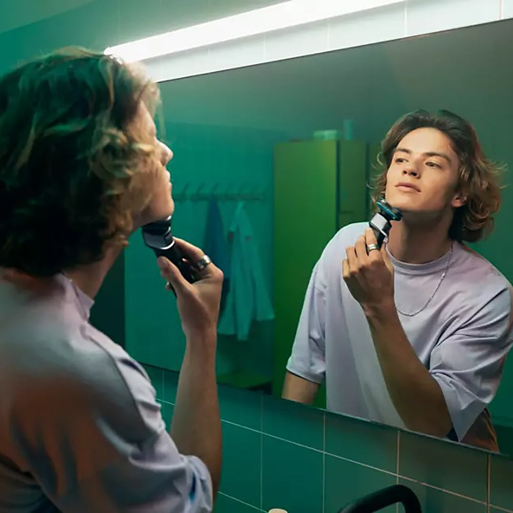 ウェット&ドライ設計。手早くドライシェービングを行うことも、シャワーを浴びながらお気に入りのフォームやジェルと組み合わせて爽快なウェットシェービング・お風呂シェーブを行うこともできます。