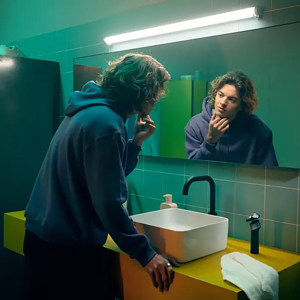 スタイリッシュで、スリムな自立スタンドタイプのシェーバーハンドル。置く場所を選ばず、保管しやすく衛生的です。