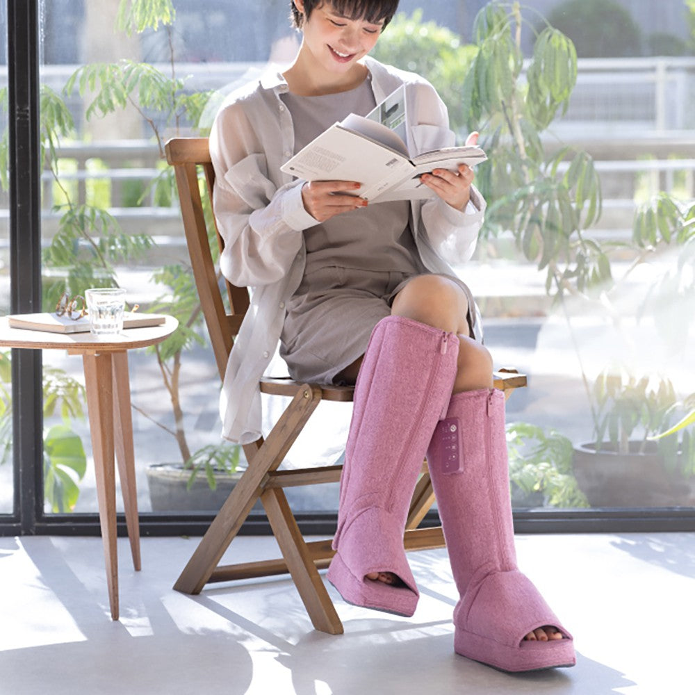 足先からふくらはぎまで5層のエアバッグで包み込むブーツ型マッサージャー。