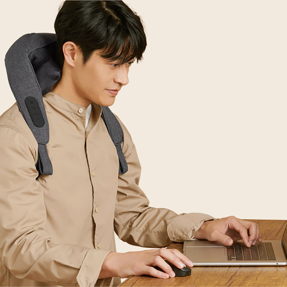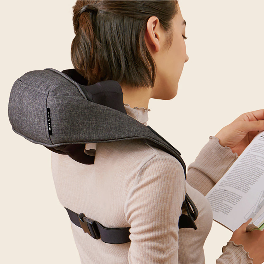 体に装着してハンズフリーで使えるネックマッサージャーが登場。小型で最軽量クラス※だから実現した新しいスタイルです。
