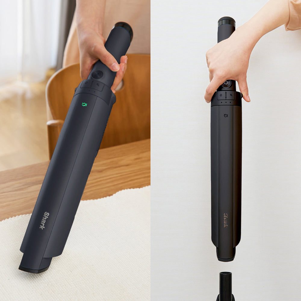 片手でリリースボタンをつまむだけで強力なハンディとして使用できます。掃除中に気になった、家具上や狭い場所のお掃除も、その場でハンディにして使えます。ゴミ捨てもハンディからそのままワンタッチで簡単です。