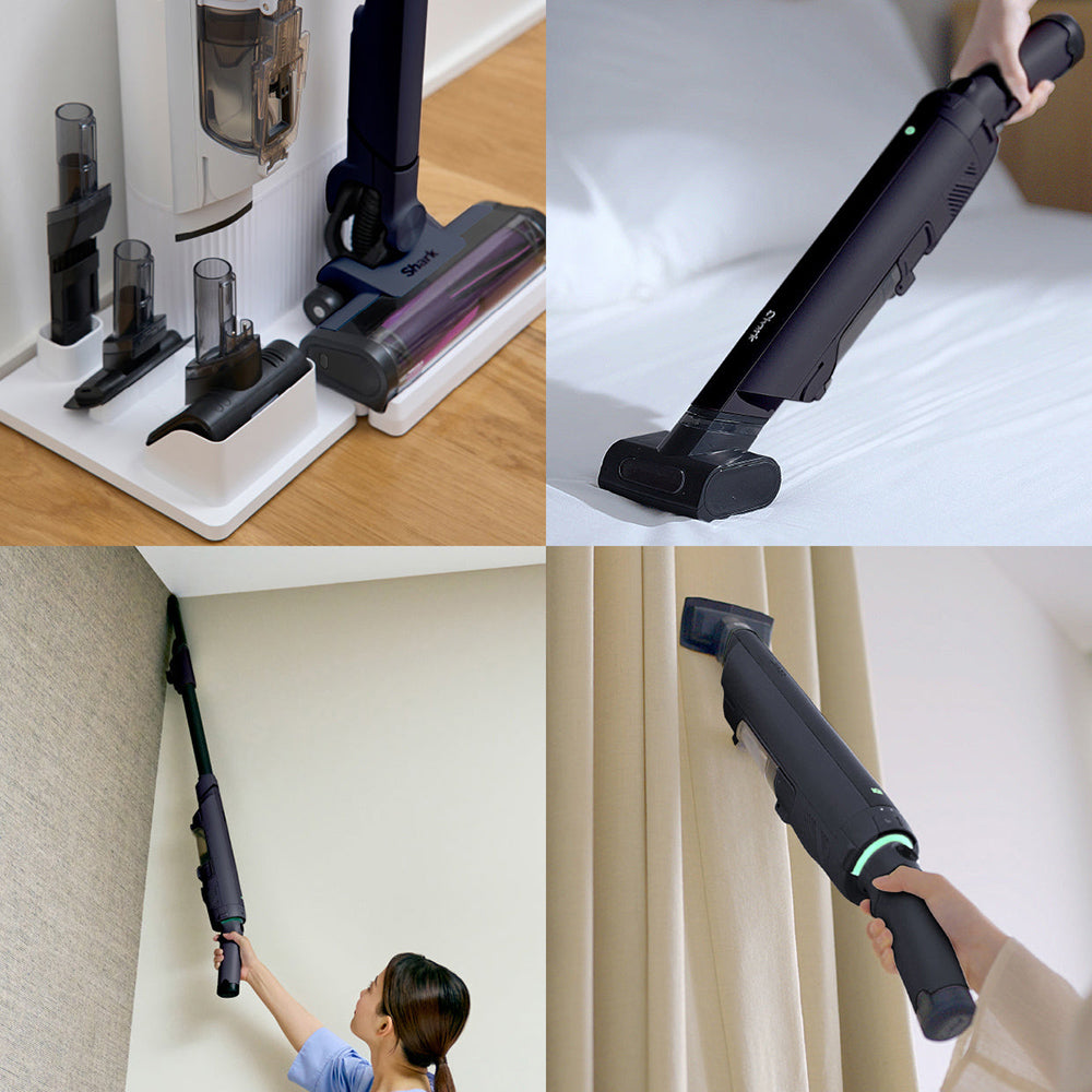 付属のアクセサリーで、家具の隙間、ベッドやソファなど、様々な場所をお掃除できます。アクセサリーはすべてドックに収納できるから、使いたい時にすぐに使用できます。