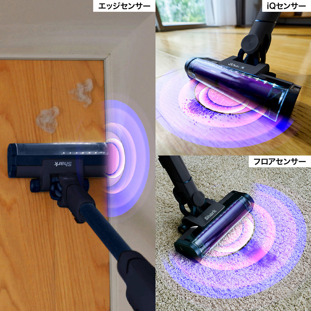 軽いのに想像以上の吸引力に加え、シャーク独自の3つのセンサーの力であらゆる場所のゴミをしっかり取り除く。