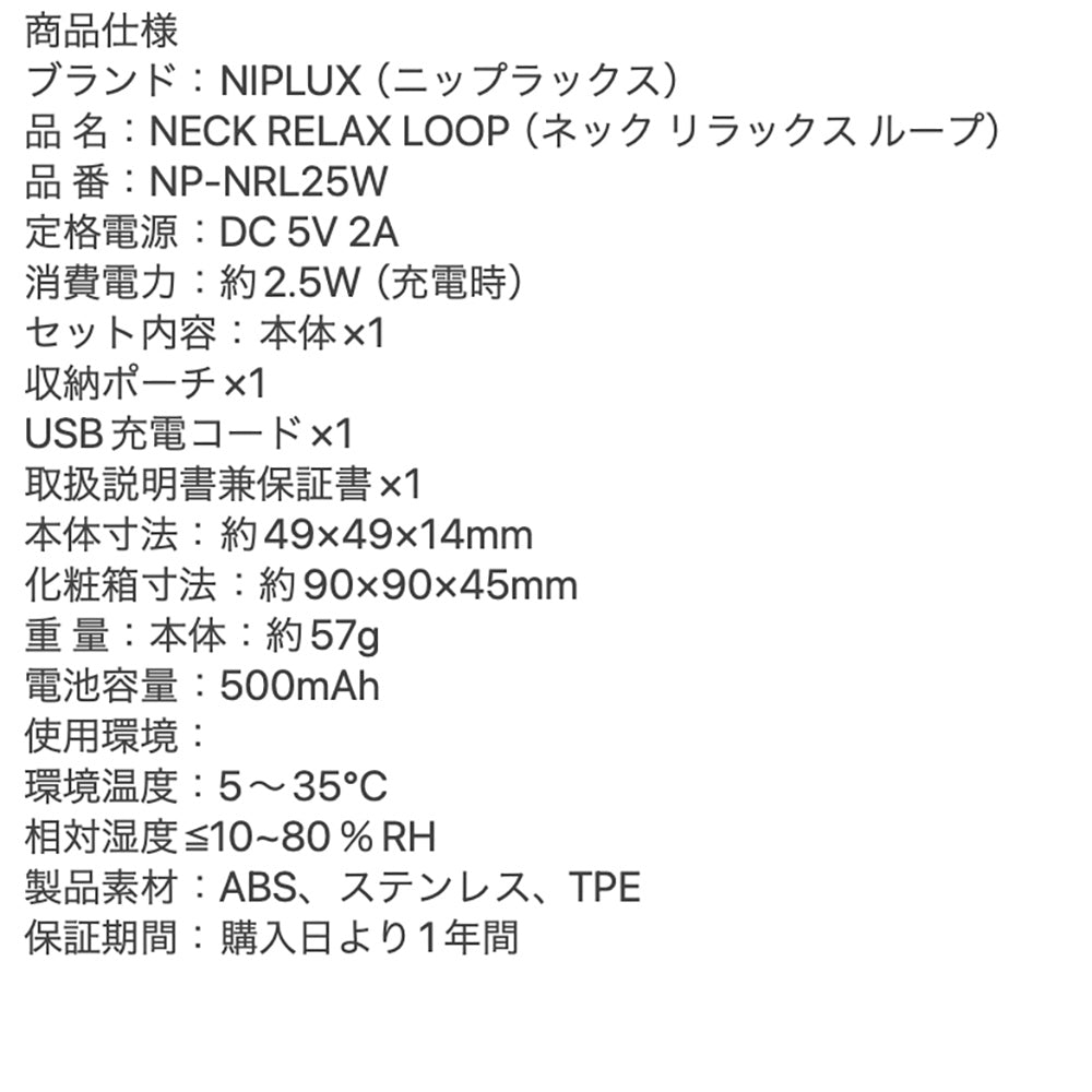 ■商品内容:NIPLUX ニップラックス NECK RELAX LOOPホワイト