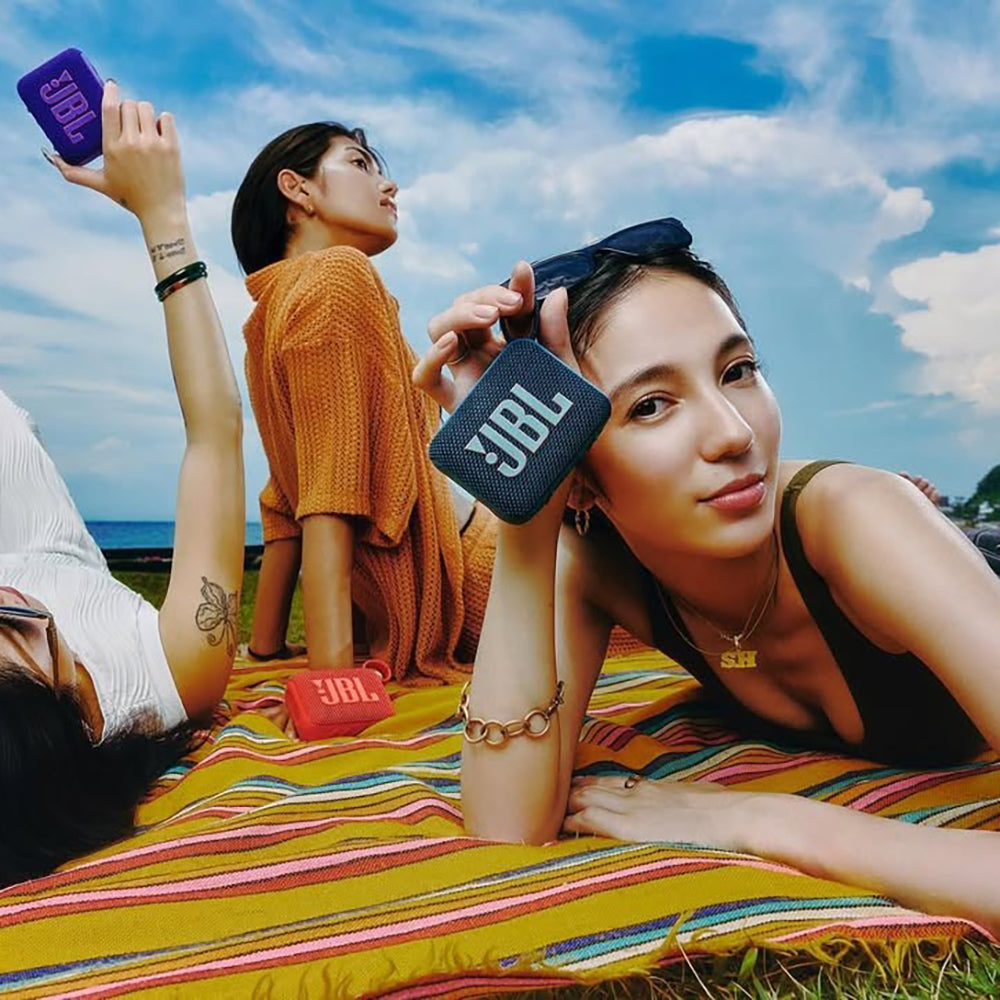 JBL GO 4はIP67防水・防塵規格により、プールサイドパーティや海辺のピクニックなど、ほぼあらゆる場面でお使いいただけます。*充電は必ず端子が乾いた状態で行ってください。故障や火災の原因となります。