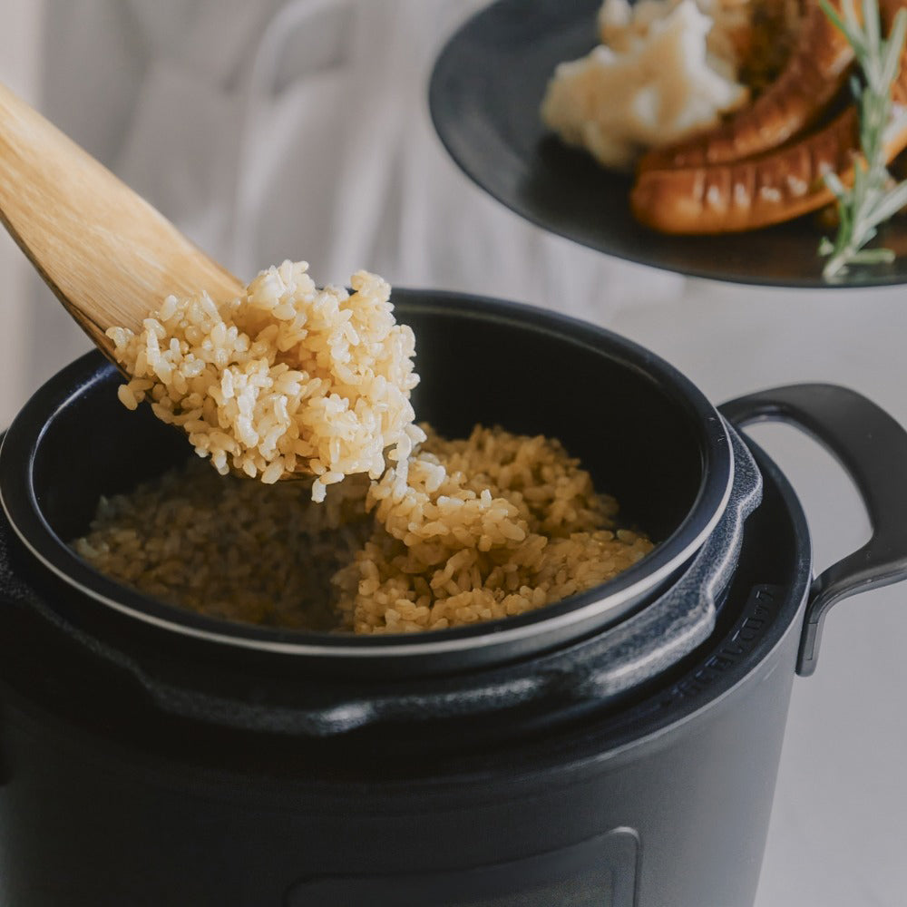 炊飯器で炊くと硬くパサつきがちになる玄米もRe・De Potを使えば、水分を逃さずに弾力のあるもちもちした食感に炊き上がります。