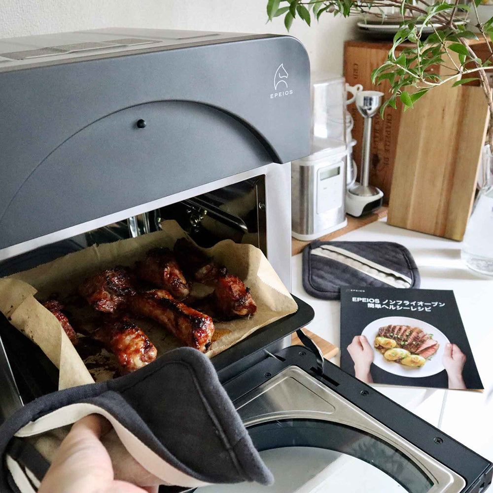 健康にも配慮した油不使用で、揚げ物のようなサクサク感を手軽に実現することができます。しかも、グリルやオーブンとしても使える多機能な調理器具で、食材の種類に関係なく、簡単でおいしい調理ができる、まさに家庭の魔法の調理器具。おいしく健康的な料理をお家でも。