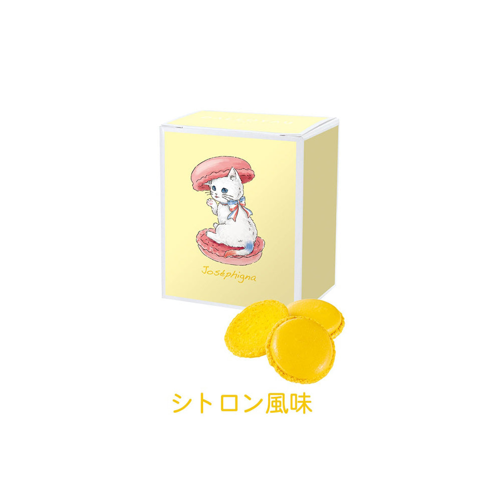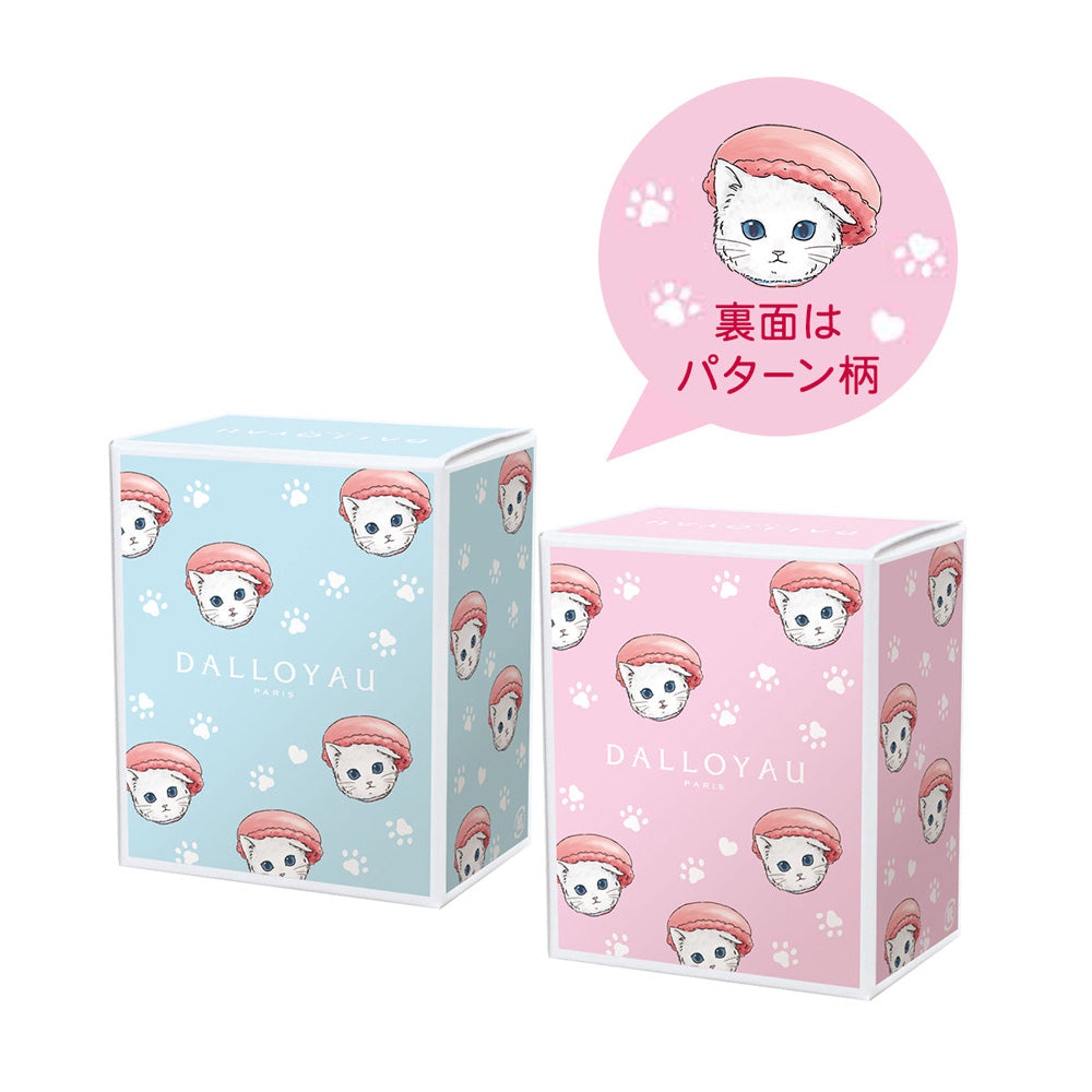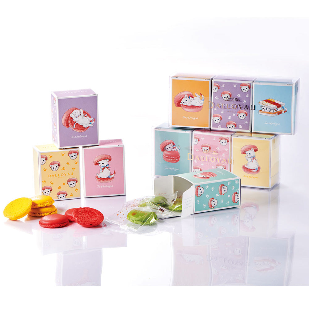 ダロワイヨジャポンのオリジナルキャラクター「ジョセフィーニャ」デザインの箱入り。ラスクと連動した6色のパステルカラーが目を惹きます。