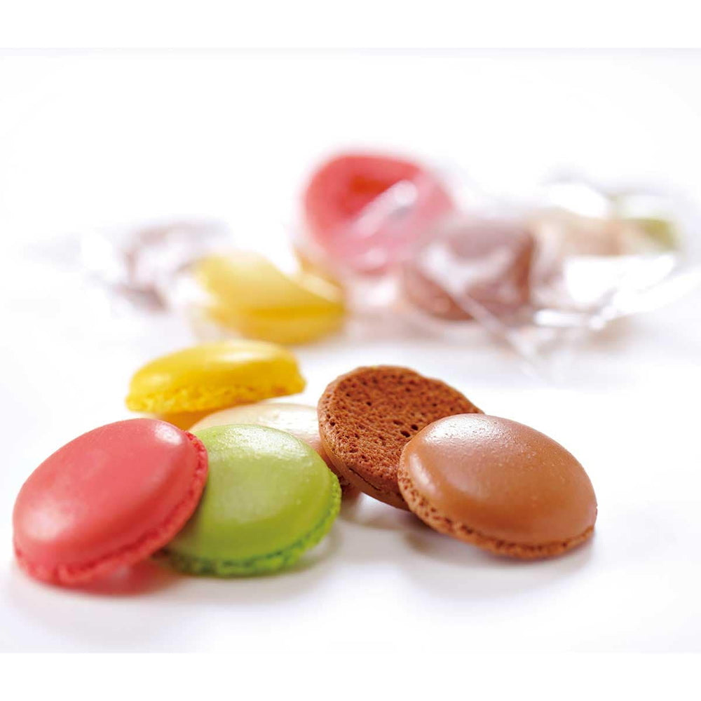 マカロンの生地を2度焼きし、サクサク食感に仕上げました。しっかりとした歯ごたえとともに、アーモンドの香りがふわっと広がります。