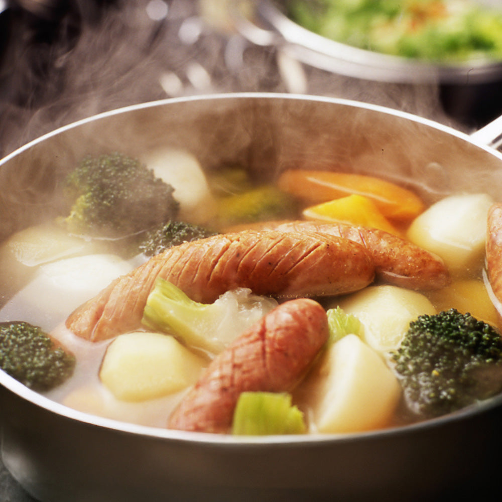 ■お肉のポテンシャルを最大限生かした手作りソーセージの詰め合わせです。ボロニアタイプソーセージは大粒の粗びき肉と多種にわたるスパイスを配合したクラシックな製法のソーセージ。チリはピリッとした辛さがクセになります。バジルはレモンを加えて作った爽やかなハーブソーセージ。軽く温めてからお召し上がりください。