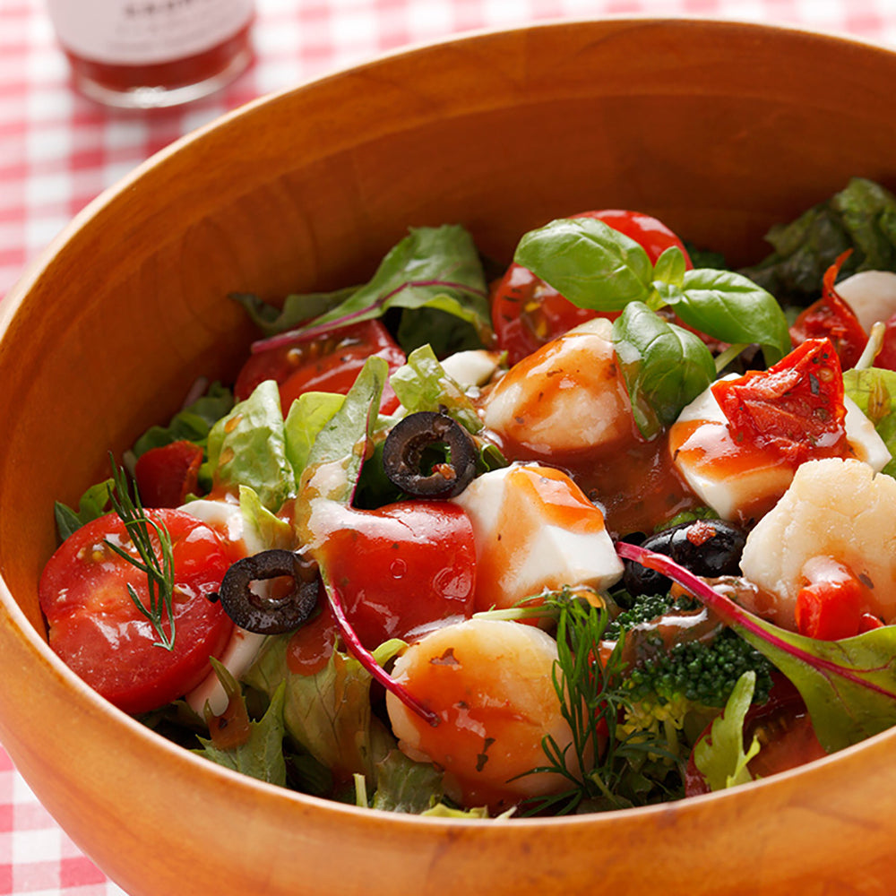 酢には「りんご酢」、油には「こめ油」を使用しているので、フレッシュでさわやか、すっきりした甘さのある健康的なドレッシングに仕上がりました。