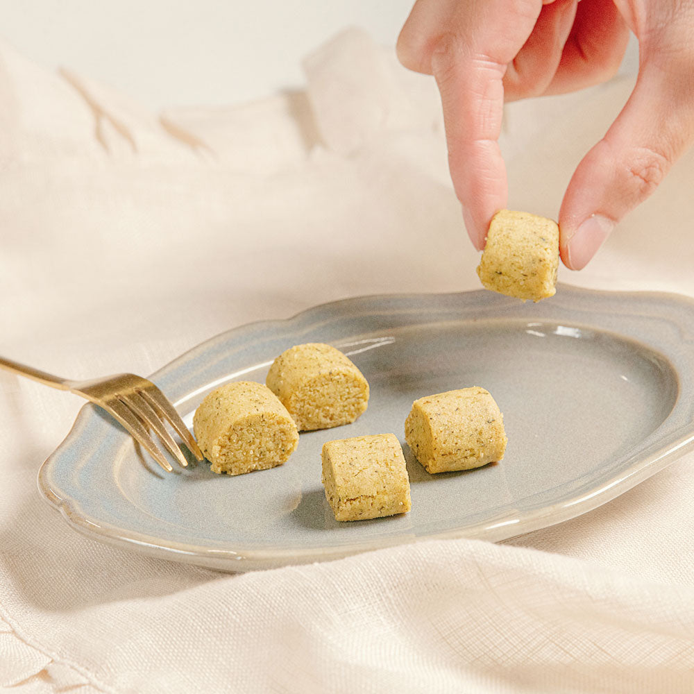 普段は食べない、お茶の葉を無添加クッキーに。一流シェフが丁寧に手作りした逸品。粉茶をそのまま使用しているので、香ばしいお茶の味がクセになります。店主がほぼ毎日食べてしまっている、中毒性のあるクッキーです。
