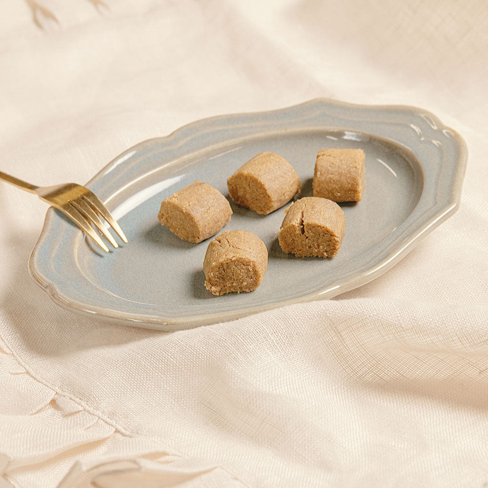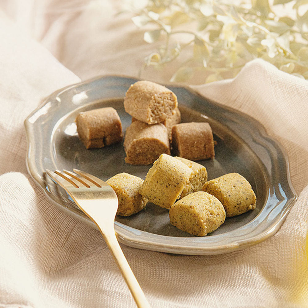 パウダー状のほうじ茶を贅沢に使用した、ほうじ茶感満載のクッキー。少しの塩気がアクセントになっていて、甘いものが苦手な方にもおすすめです。もちろん、合わせるお茶もほうじ茶がぴったり!