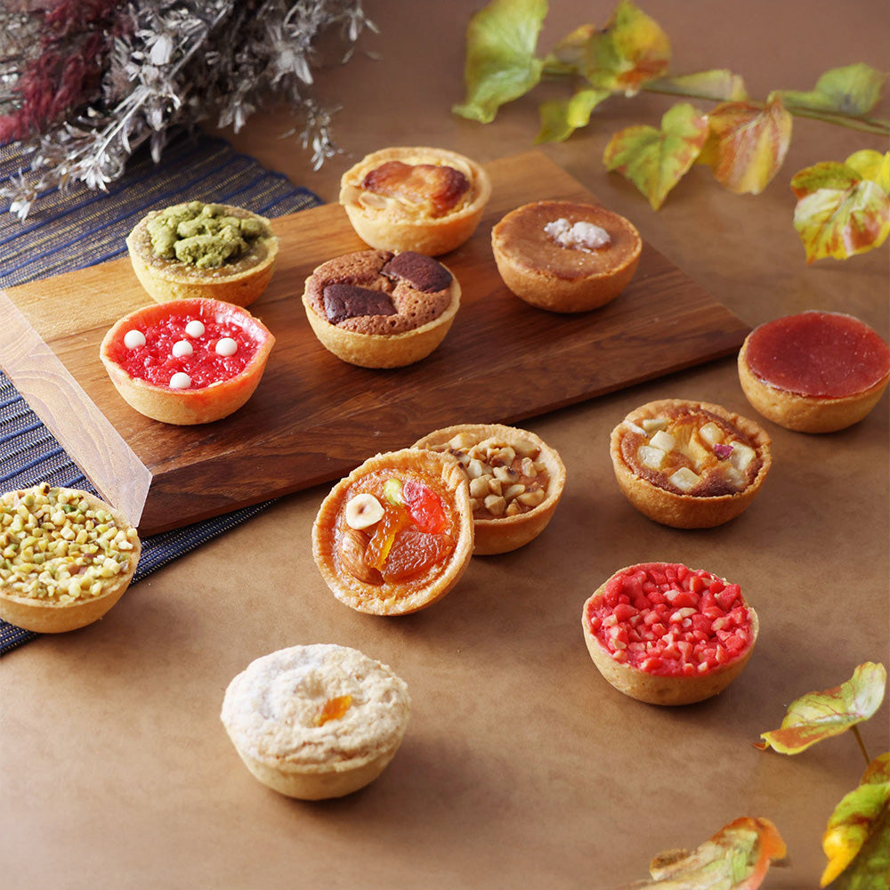 ■タルト生地にマドレーヌやフィナンシェなどを入れ、フルーツやナッツを重ねたタルト。