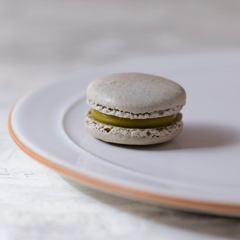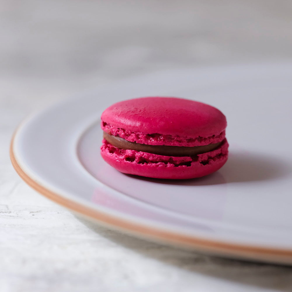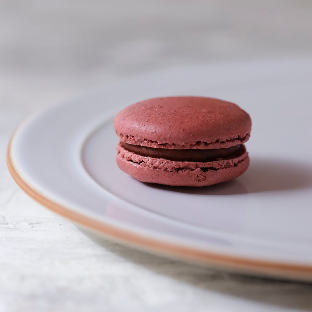 マダガスカル島北部で収穫されたフローラルでフルーツの香りが特長のチョコレート、マディロフォロ65% を使用したガナッシュ。マカロン生地にもカカオ豆を練り込みチョコレートらしさをより一層引き立てました。