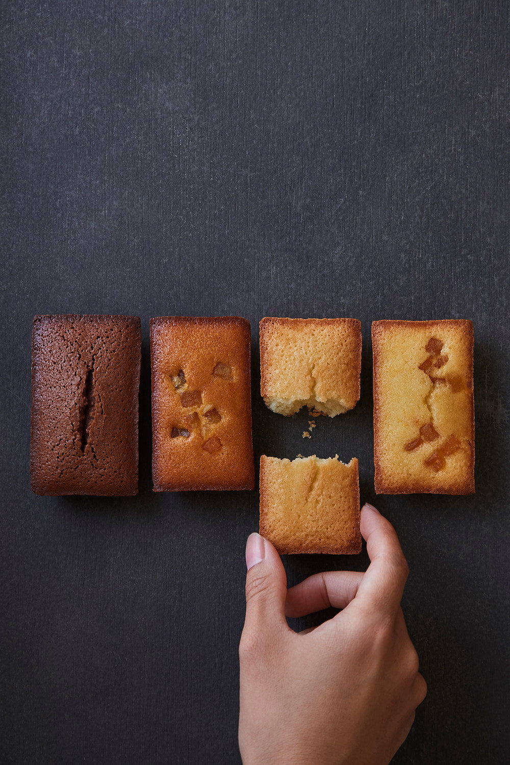 アーモンドプードルの風味豊かなナチュールと、ガトーショコラのような濃厚な味わいのショコラ、オレンジコンフィを混ぜ込んだオランジュ、オランジュキャラメルの4種のフィナンシェの詰合せ。