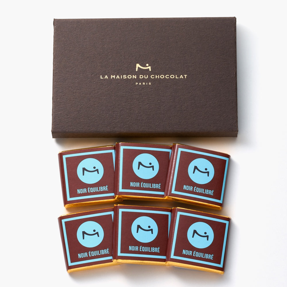スマートなボックスに、滑らかな口溶けの小さな四角い板チョコレートを、6枚収めました。