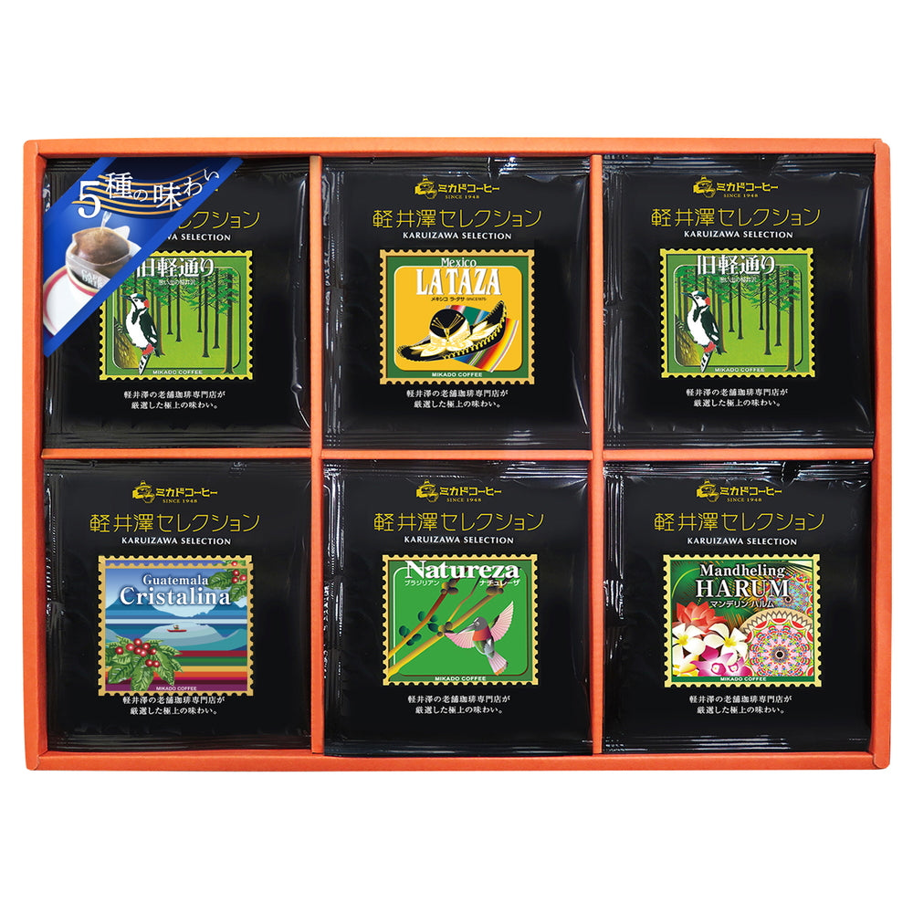 軽井沢で親しまれ、好評を博している『軽井沢セレクション』をアソートギフトにしました。お湯を注ぐだけで手軽にお楽しみいただける簡易ドリップ式になります。