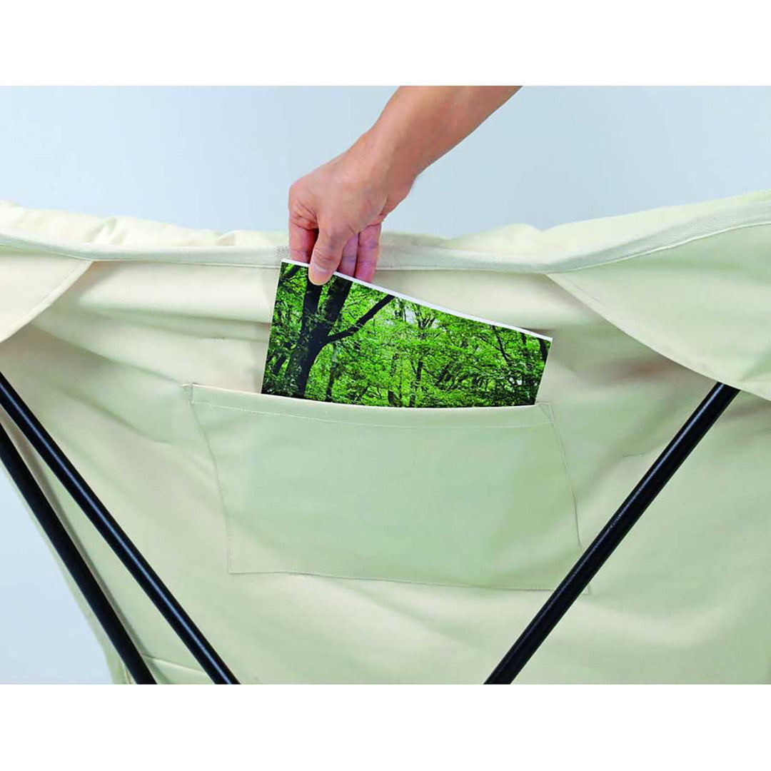 ■ゆったり座れるリラックスチェア。組立簡単、クッション入りで座り心地抜群。便利な背面ポケット付。