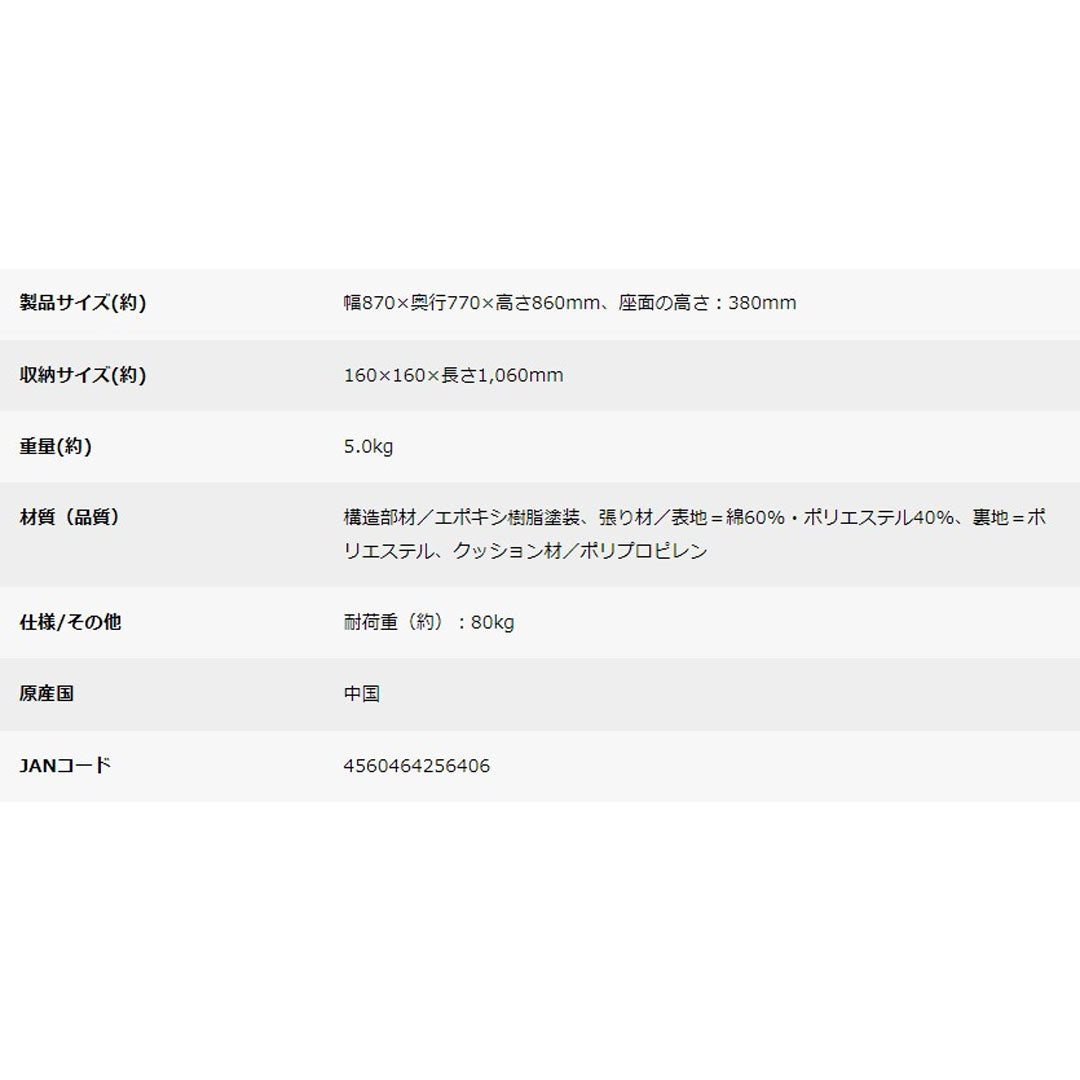 製品サイズ(約) 幅870×奥行770×高さ860mm、座面の高さ:380mm