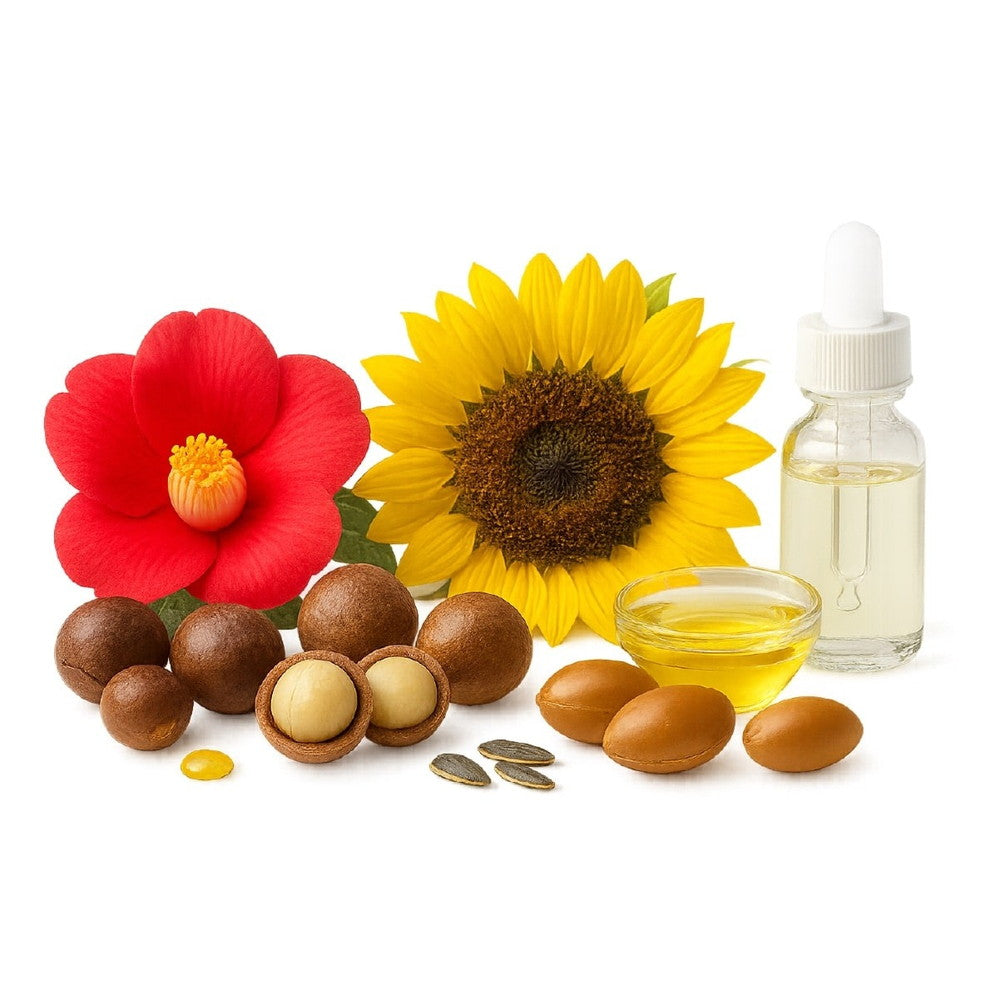 ツバキ・マカデミア・ヒマワリ・アルガン・スクワランを配合。乾燥によるパサつきを抑え、しなやかに整える。