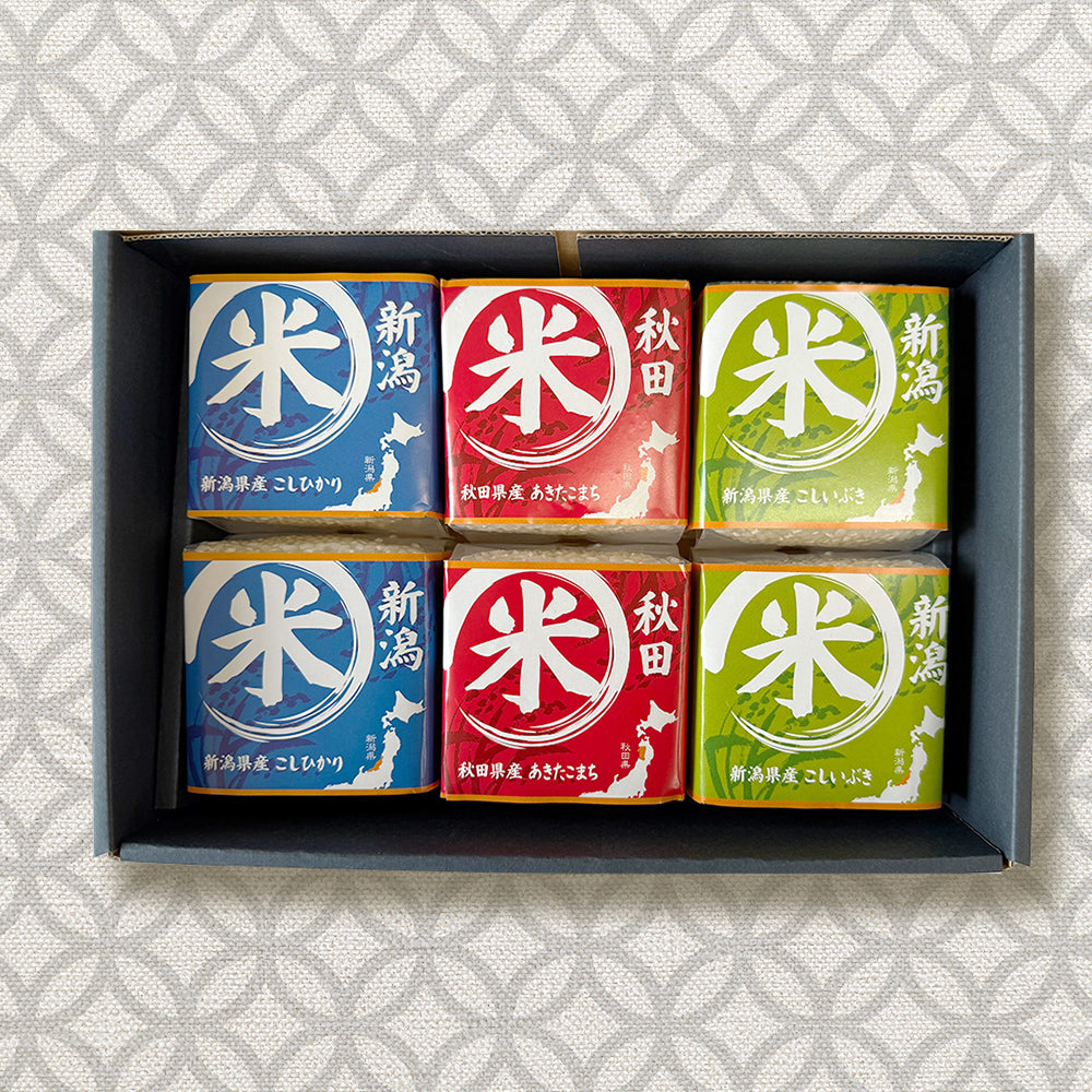 セット内容:新潟県産コシヒカリ1合(約150g)x2/新潟県産こしいぶき1合(約150g)x2/秋田県産あきたこまち1合(約150g)x2