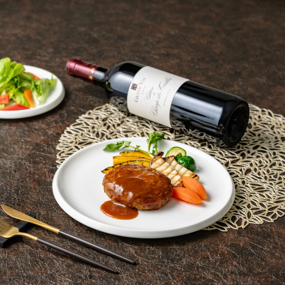■ラ・ロシェル坂井宏行シェフのデミグラスソースハンバーグ。焼き目をつけ中にお肉の旨みを閉じ込めたハンバーグを、こだわりのデミグラスソースと合わせました。湯せんでお召し上がりいただけます。