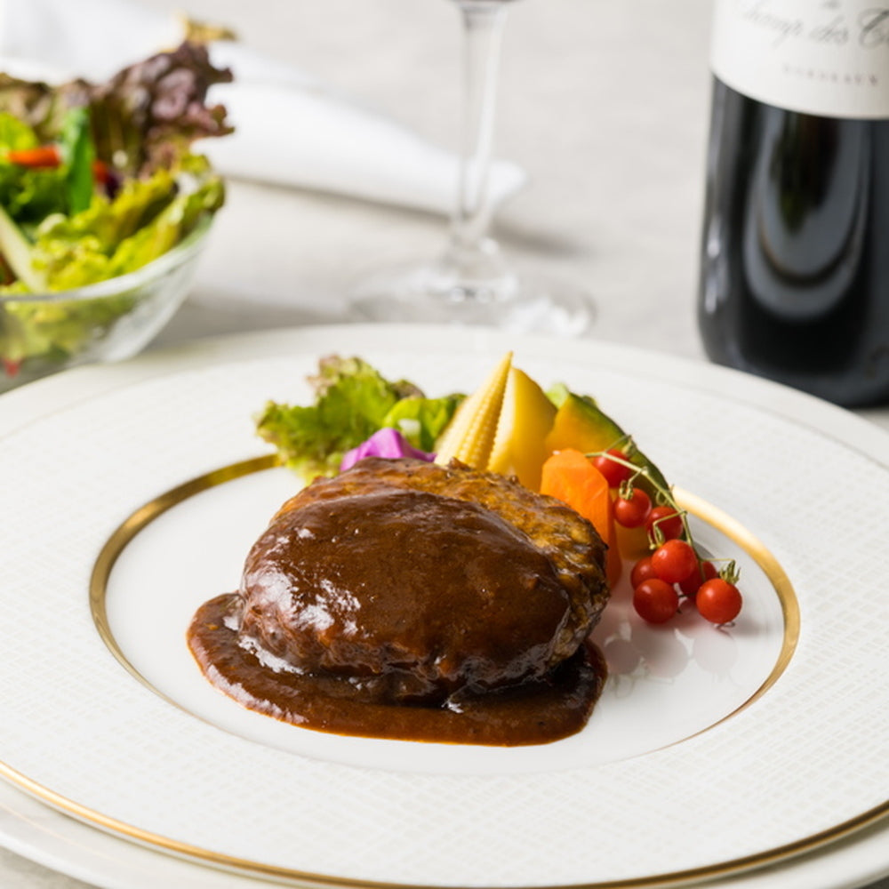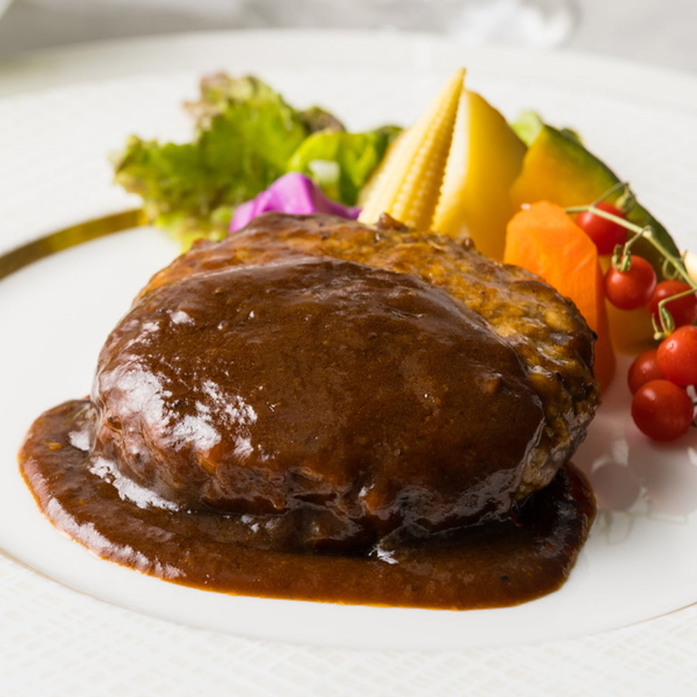 ■肉本来の旨みを楽しめる、肉感たっぷりのジューシーなハンバーグに仕上げました。